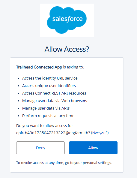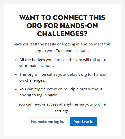 You’ll need to log into your new org so remember to save that User Name and Password in a hand place:
