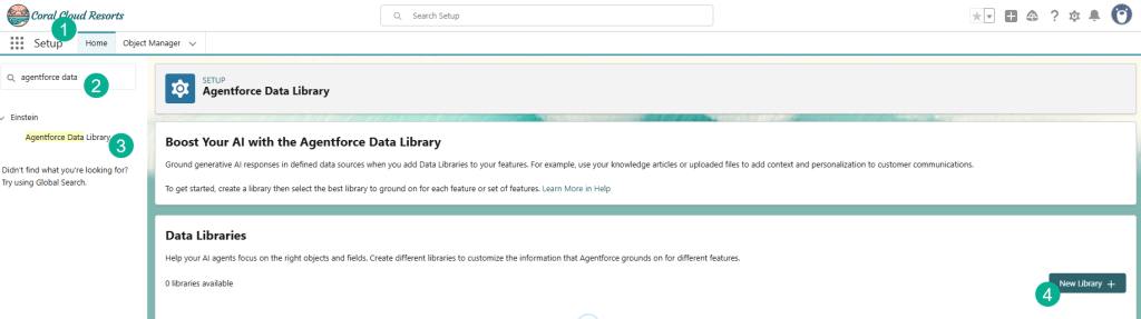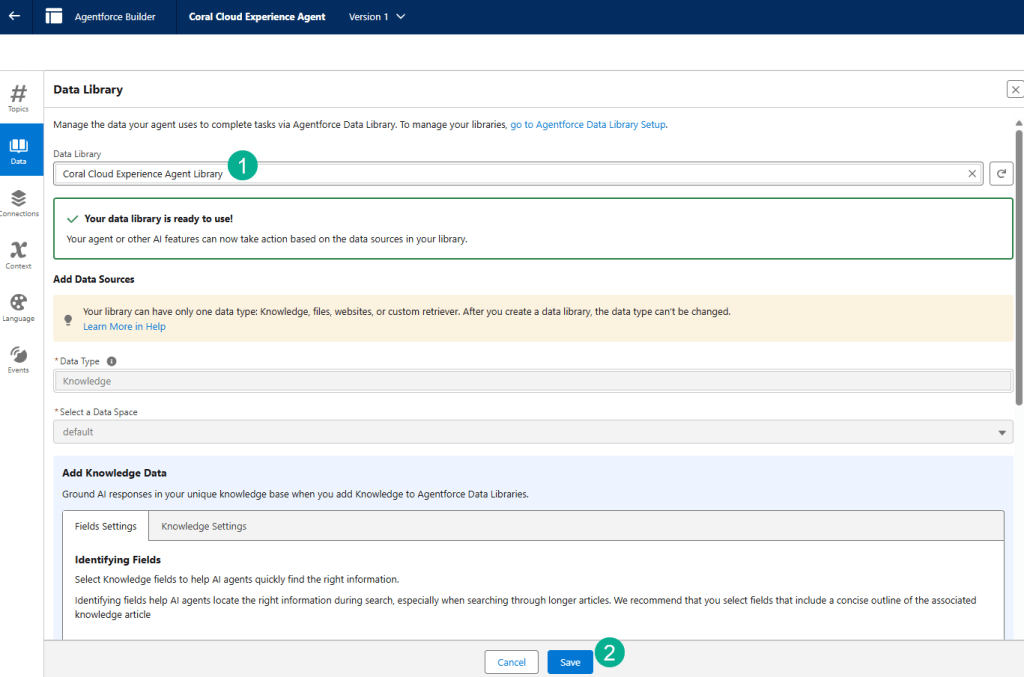 (1) Paste in the name of the library provided by Salesforce. No need to populate the API Name as it’s created automatically. You can paste in the name into the description.