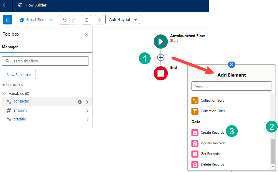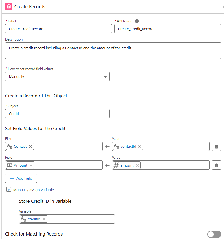 We’re going to start first by creating a flow that creates the credit record.