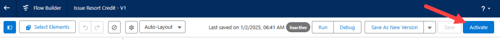 If all looks good, save and activate the flow using the following info: