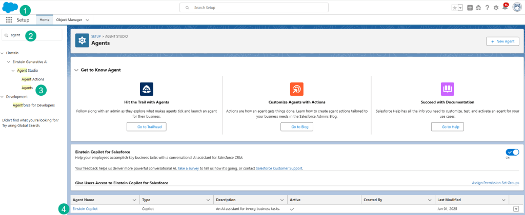 (3) Click on Agents under Einstein Generative AI.