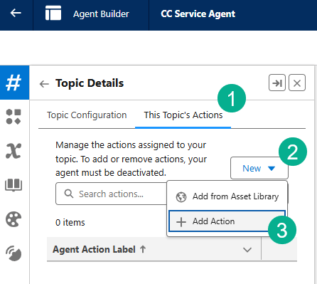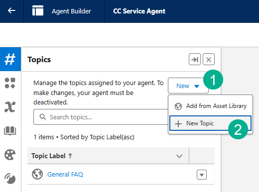 (1) Still in the same Agent Topic, select Topic Configuration.