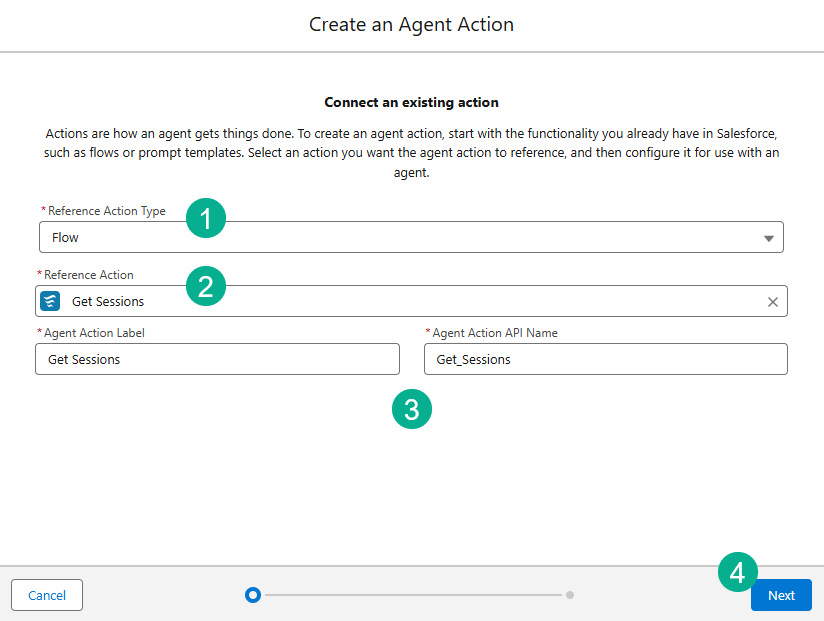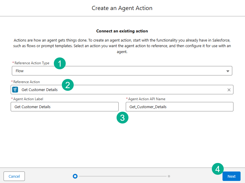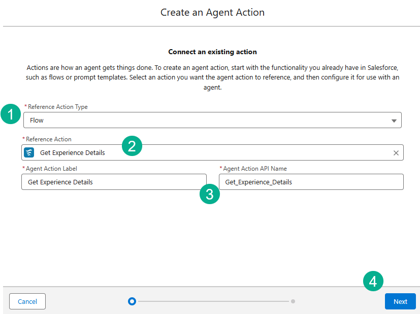 (3) Leave the Agent Action Label and Agent Action API Name as is.