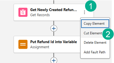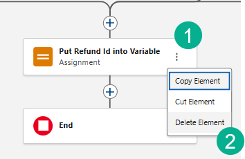 (1) In the three circles of the Create Refund Order activity, click on the three dots.
