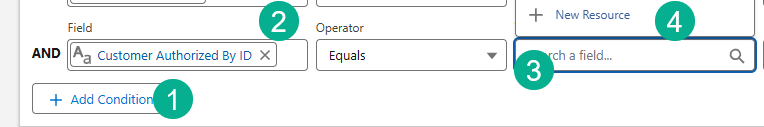 (4) We need to add three conditions. The first see below on how to select the Resource.