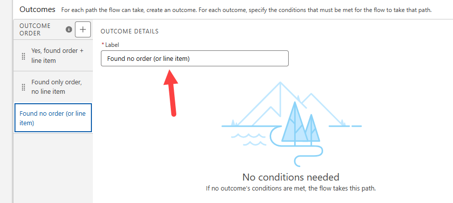 (3) In the Outcome Order add the following Label: “Yes, found order + line item.”
