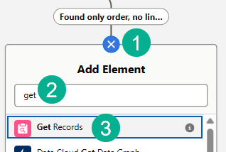 (1) Under the third outcome path, click on the plus sign under “Found no order (or line…).