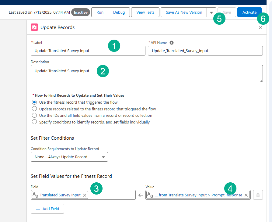 Step VI: Add Update Translated Survey Input Update Record Activity