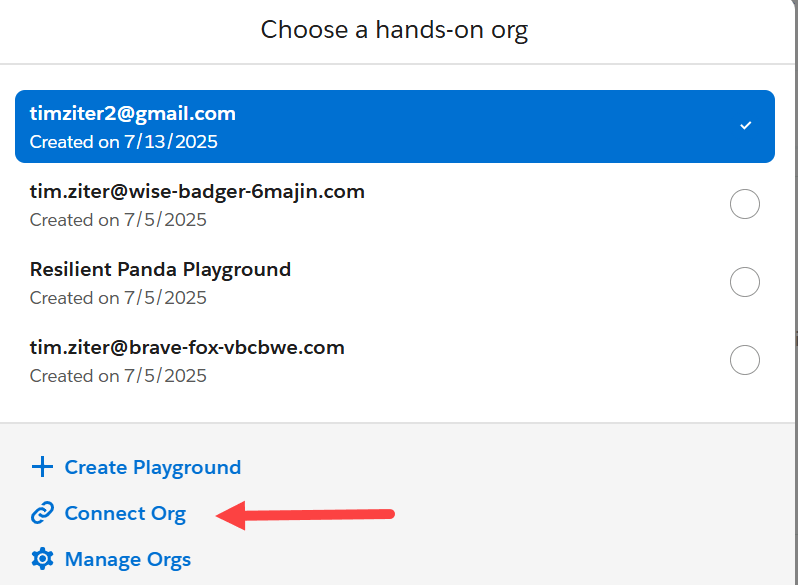 You might receive an error if you haven’t connected your new org. If you aren’t seeing your org in the launch screen: